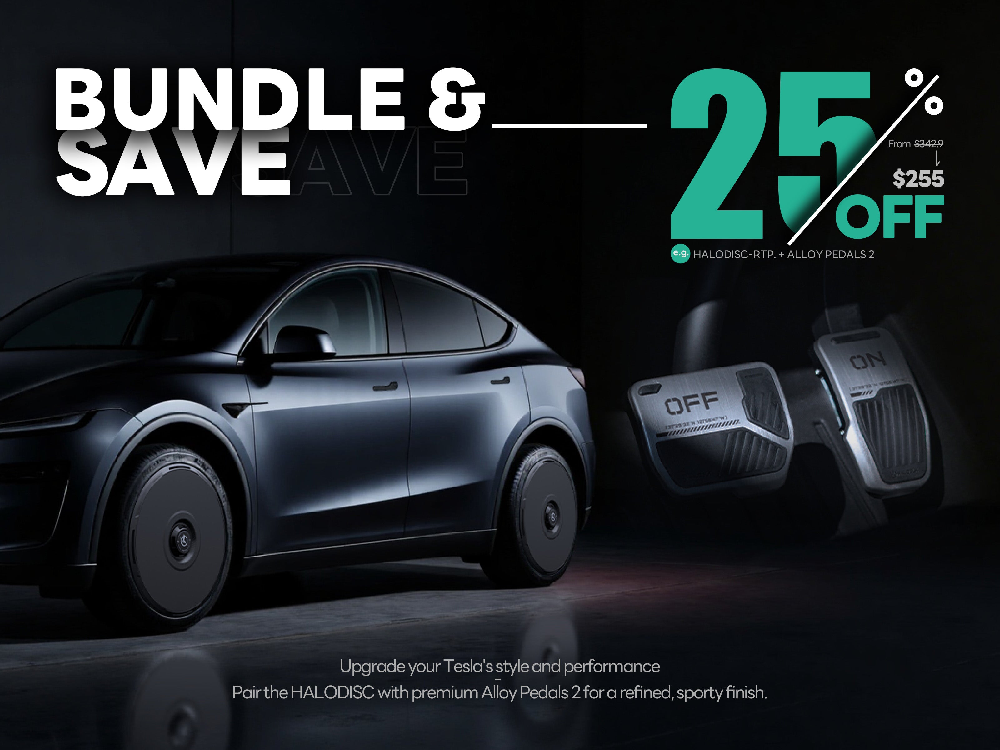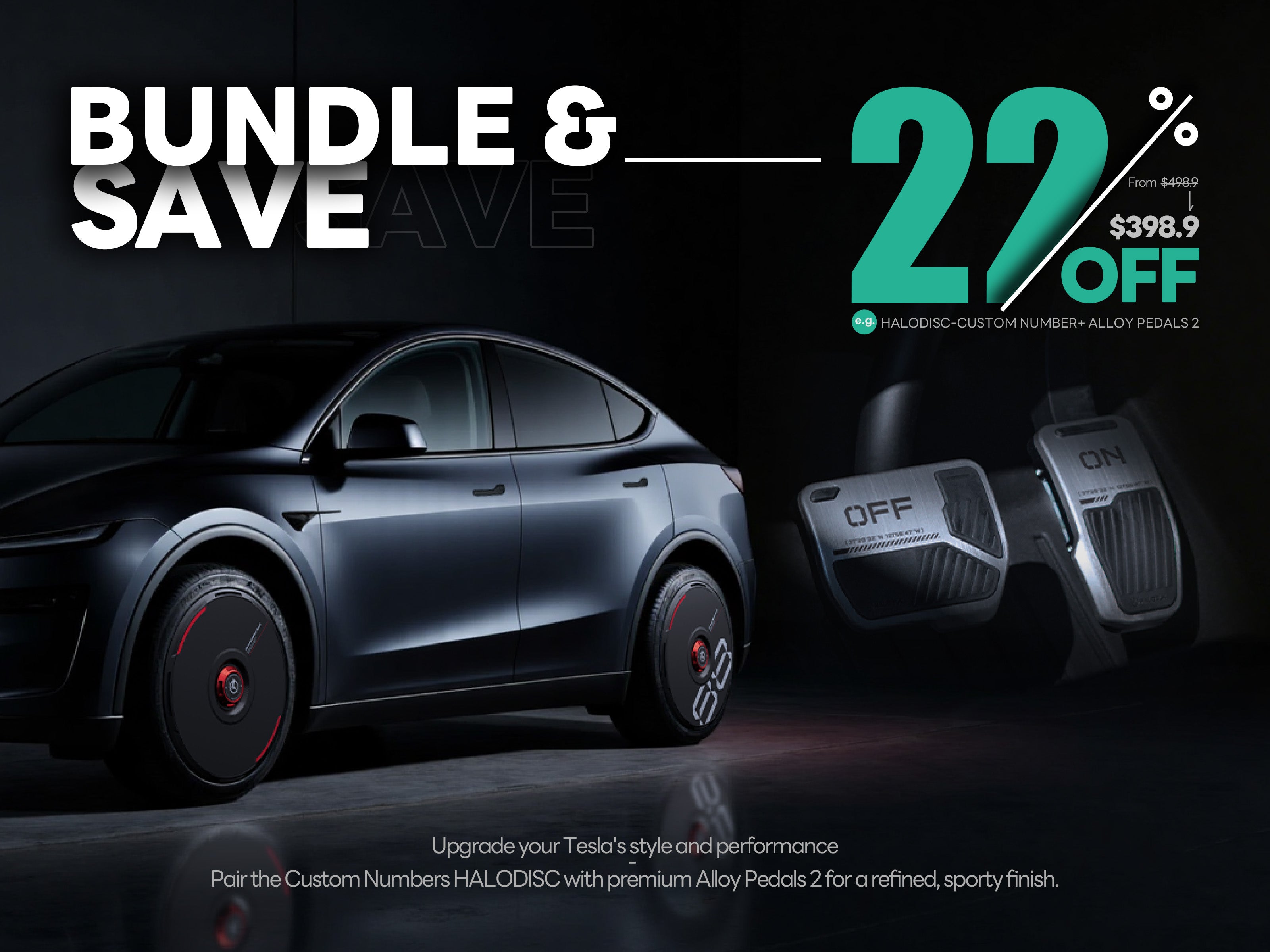 Grab the Custom Numbers HALODISC or RTP + Alloy Pedals 2.0 to get up to 25% OFF, saving up to $109.9. Available all November long — the best way to upgrade your Tesla for less.